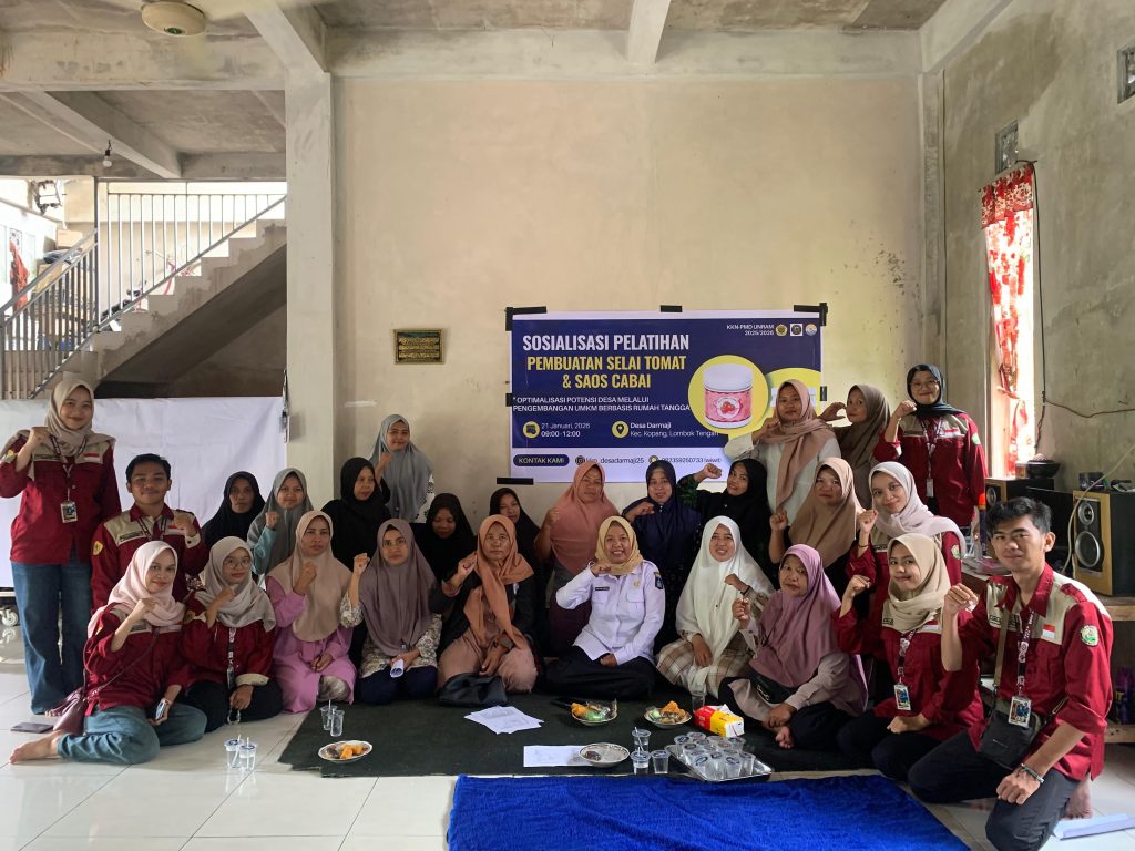 Kelompok KKN Universitas Mataram di Desa Darmaji melakukan Pelatihan Pembuatan saos cabai dan selai tomat. Kegiatan yang dilaksanakan pada hari Rabu (21/01/2026) tersebut melibatkan masyarakat dari unsur Pengurus PKK, Kader Posyandu dan pegiat UKMKM kurang lebih sebanyak 31 orang. Kegiatan ini merupakan porgram utama Kelompok KKN Unram di Desa Darmaji yang bertujuan untuk meningkatkan keterampilan masyarakat dalam mengolah hasil pertanian lokal.